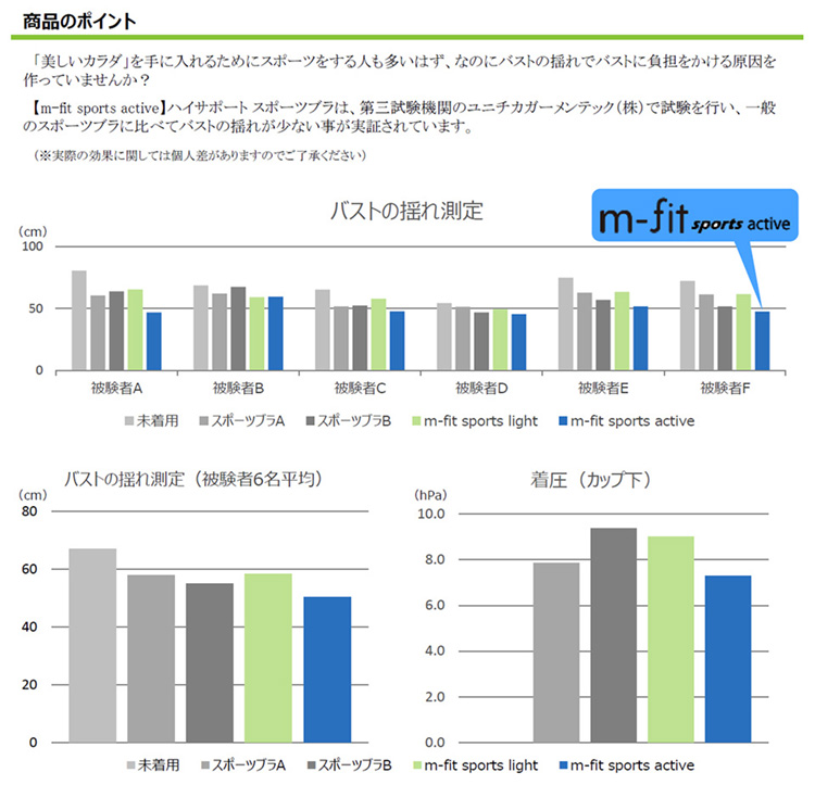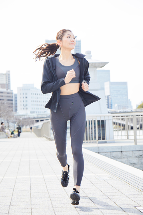 A high-support unique fabrics that catches swaying movements in all directions by adhering two pieces of two-way fabrics by dot shape with intervals. MARUKO's sports bra combined a 2-way fabric with our 3D circular wire to suppresses the shaking of the chest while being comfortable to wear.